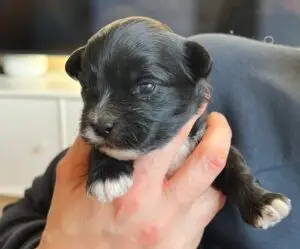 Skønneste havapoo hvalp- sort han med hvide aftegninger på bryst